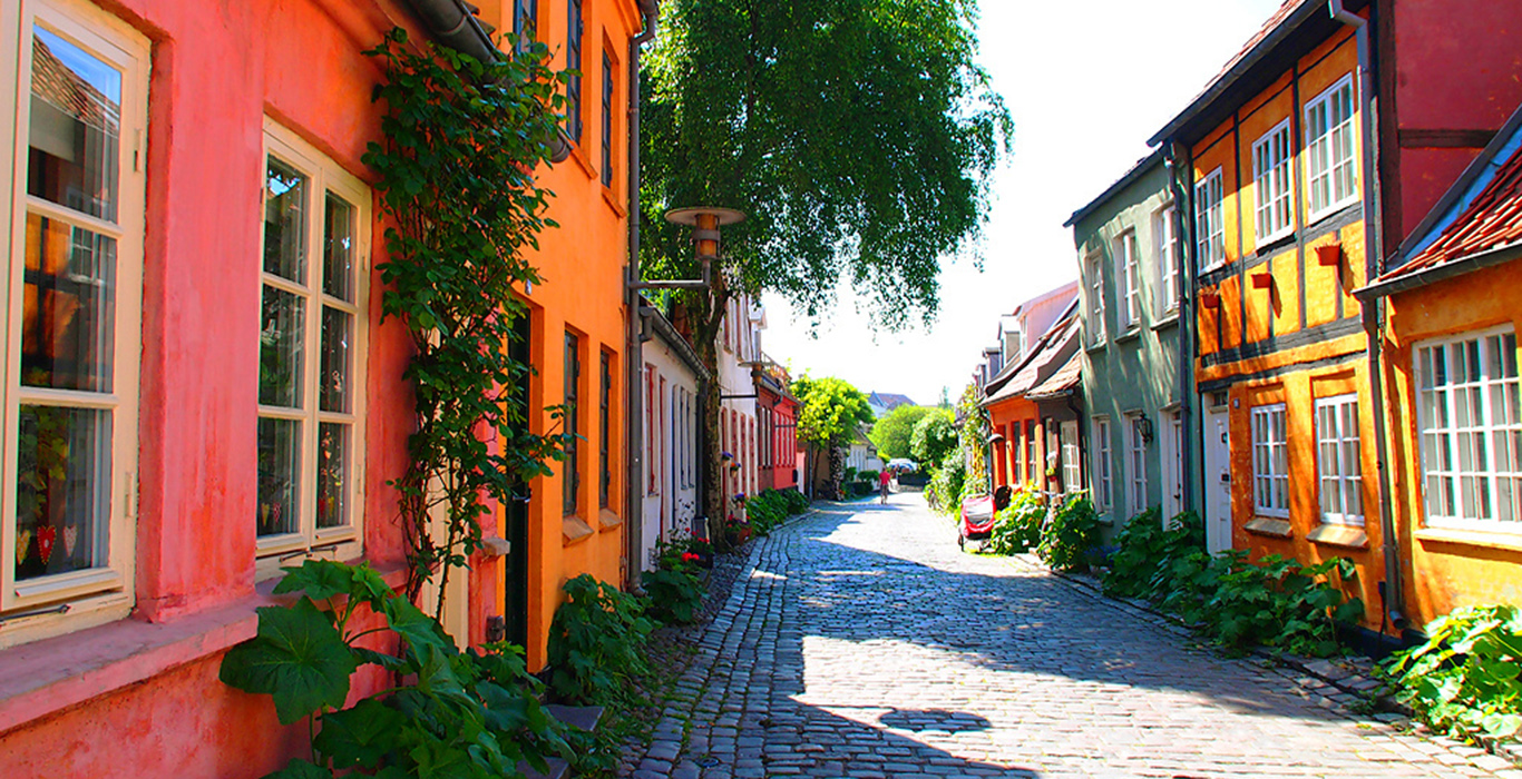 Om sommeren er der masser af stokroser op langs husene, hvilket giver en ekstra hyggelige stemning.